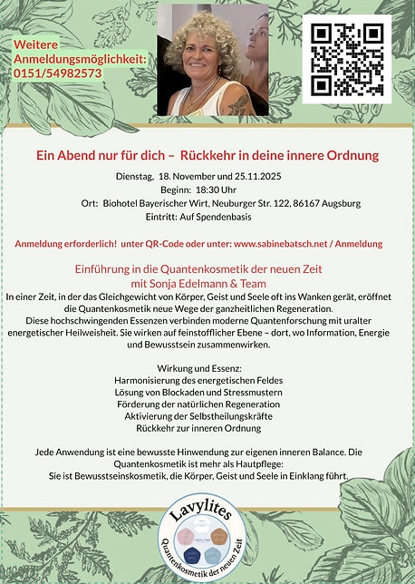 Bio Hotel Bayerischer Wirt Neuburgerstraße 122, Augsburg, Bayern, GermanyKörperliche und emotionale Probleme, behindernde Glaubenssysteme oder sonstige Blockaden sind aus Sicht der Quantenphysik lediglich Störungen im Energiefeld. Diese können ohne Aufdeckung der Ursachen transformiert werden, wenn im Bewusstsein der Person der entsprechende Impuls gesetzt wird. Diese Impulsgebung wird Quantenheilung genannt. Hiermit biete ich einen Therapieabend Quantenheilung an, an dem höchstens 12 Teilnehmer pro Abend teilnehmen können. Es handelt sich um eine Gruppentherapie in der